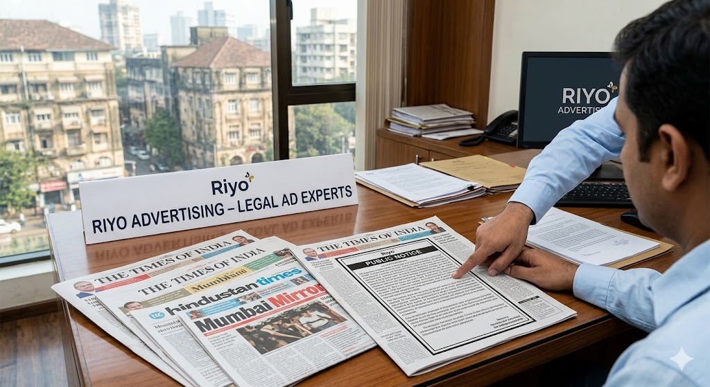 Riyo Advertising Mumbai is a specialized legal ad agency that ensures your notice is published with the right content, in the right papers, on the right date.