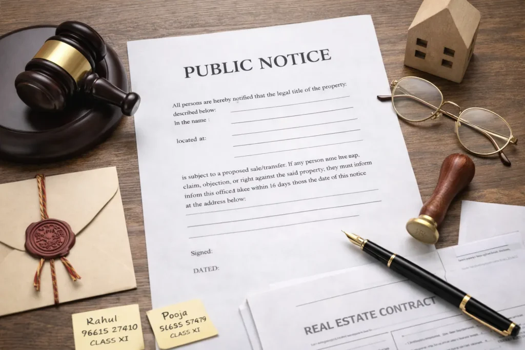 Public notice format of the Indian property transactions is a legal tool which is meant to provide fairness and transparency in property transactions. It does not only assist in informing the concerned parties on the sale of a piece of property, but also gives an opportunity to forward an objection to a transaction till a transaction is made. Following this standardized format, buyers, sellers and advocates can protect disputes that may arise in the future and operate confidently.